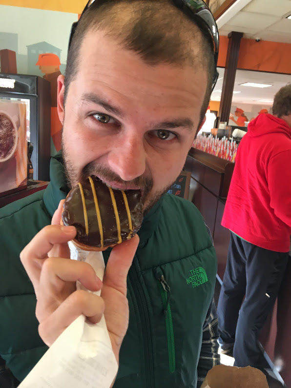 We went to Mayflower brewing to discuss our history lesson over some porter and IPA, and then continued on to camp, or so we thought. We made it to a mostly abandoned campground, with no one in the office (mind you, it’s before 5 pm). We had already reserved the space, so no big deal, we just proceeded to our reserved site. Then we realized we can’t stay there cause the bathrooms are closed. While we don’t mind “going rogue” we realize that this is meant for rv’s or trailers that have their own facilities and we’d just be the dirty hippies peeing in the bushes. So we move on to a KOA and decide to hunker there for a couple days cause a nor’easter is bound for us. Prior to the storm striking, we got a day to explore Cape Cod. But first, doughnuts. Tony had to pop a curb to get them because he was in too much of a hurry to wait for parking lot traffic to clear. And he wasn’t about to wait for me to get out of the car either.