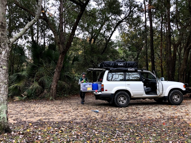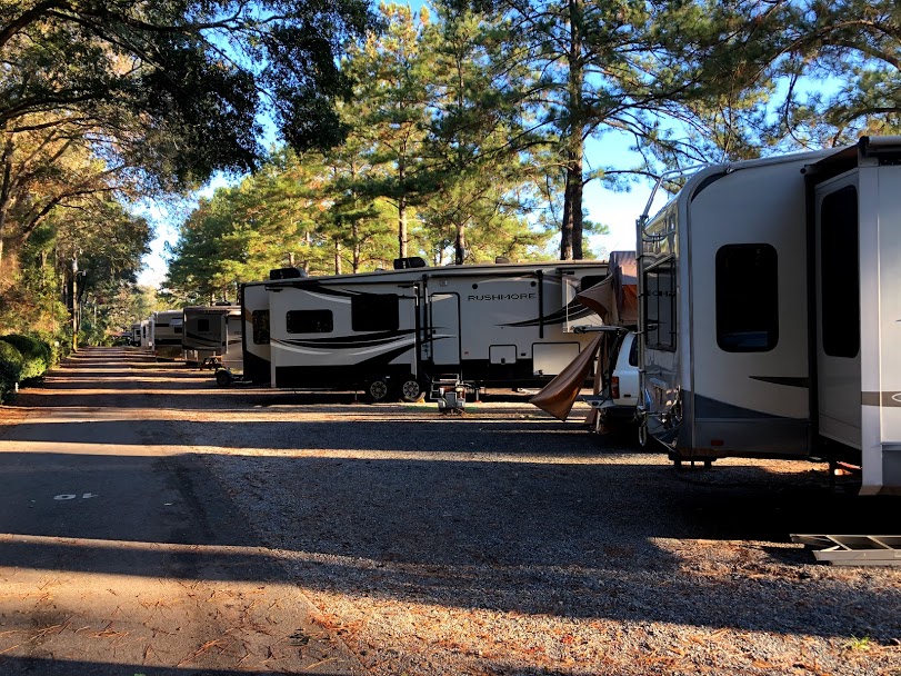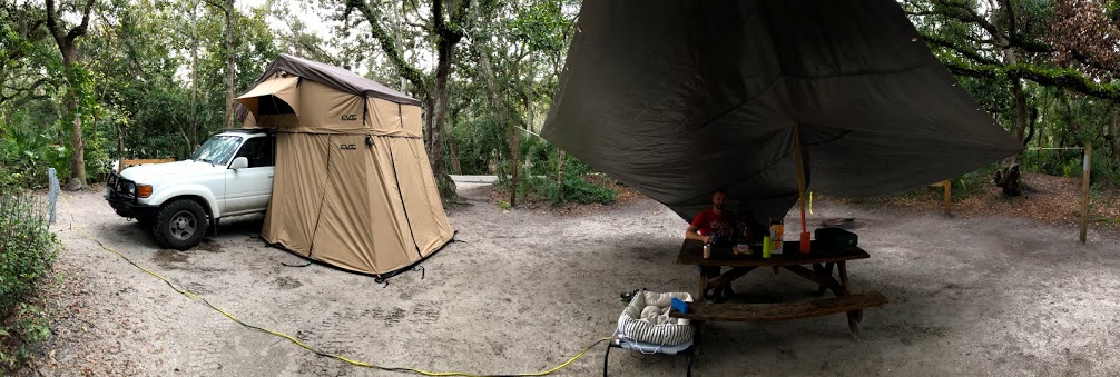 After two days of 100% humidity spent playing board games (or maybe bored games?), we said goodbye to the Atlantic and headed west to Tallahassee. It felt good to finally be headed in the rough direction of home. The only campground I could find was an RV park right off the freeway. Our expectations were quite low, but they were exceeded! There was a delicious hipster farm-to-table restaurant within walking distance, and the people were very nice, if not a little overzealous with their Christmas decorations.